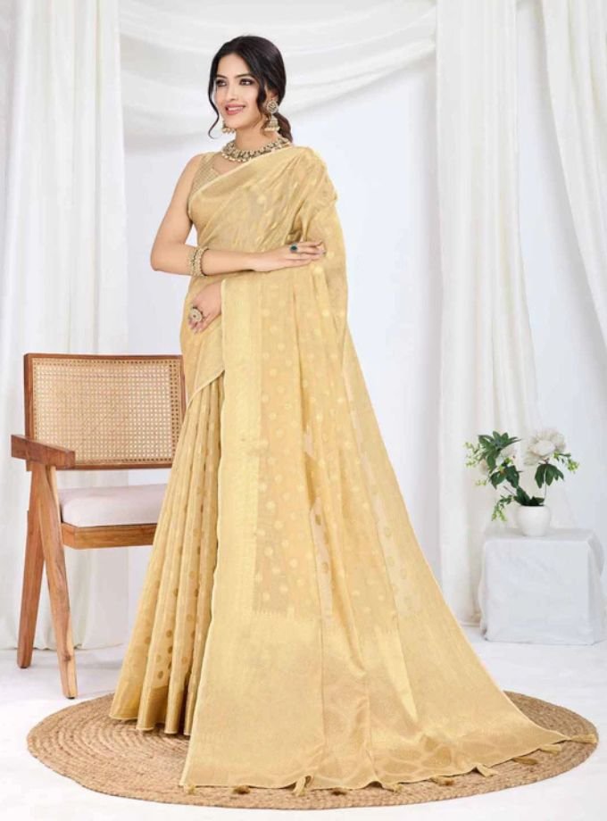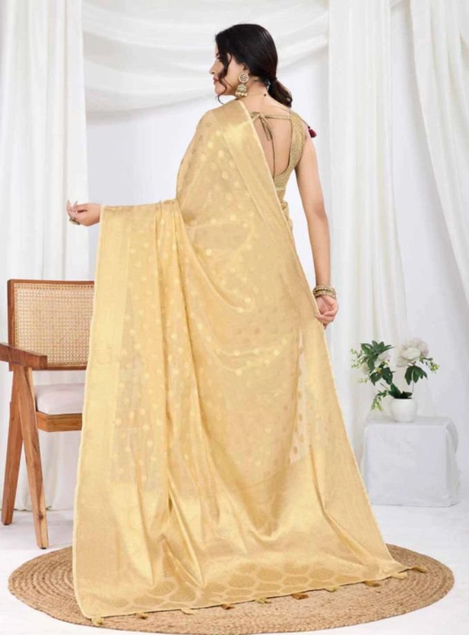 Beige Pure Tissue Silk Banarasi Saree With Blouse Piece Beige Pure Tissue Silk Banarasi Saree With Blouse Piece