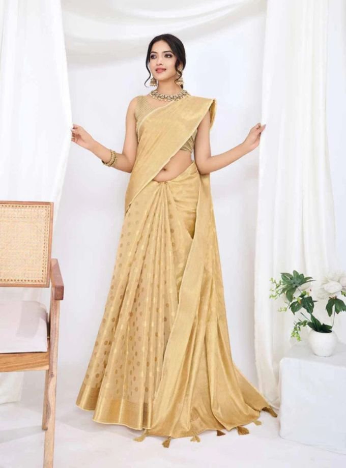 Beige Pure Tissue Silk Banarasi Saree With Blouse Piece