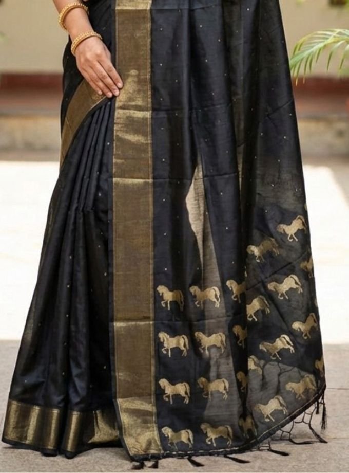 Elegant soft silk saree with rich golden border and subtle woven details — perfect for festive and traditional occasions. 💚✨