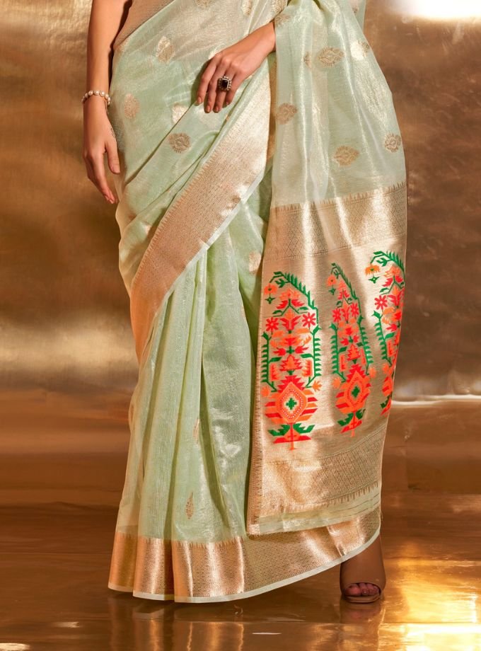 Green Paithani Zari Tissue Saree With Blouse Piece