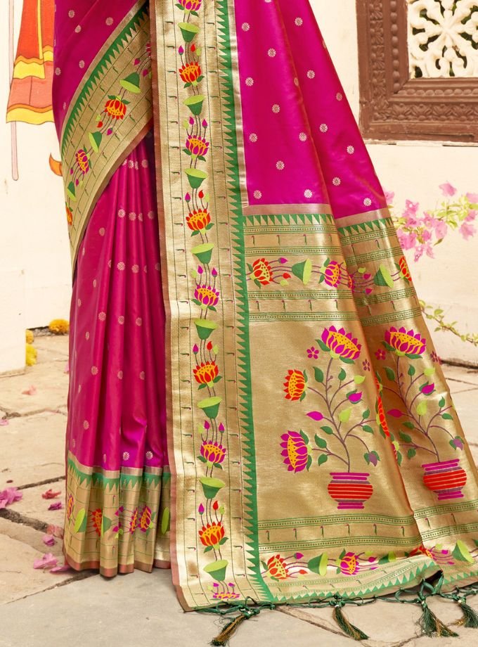 Magenta Paithani Saree With Blouse Piece