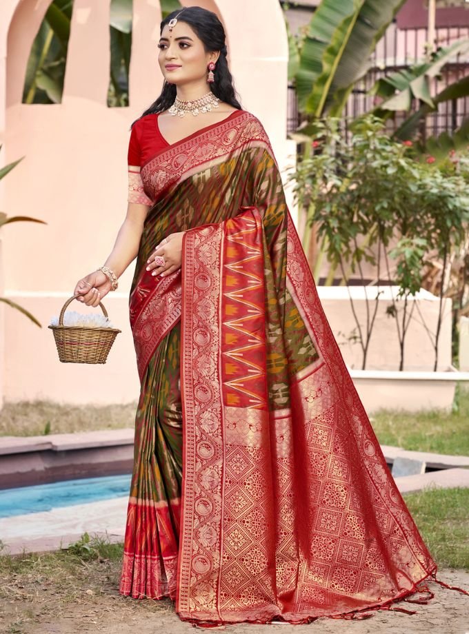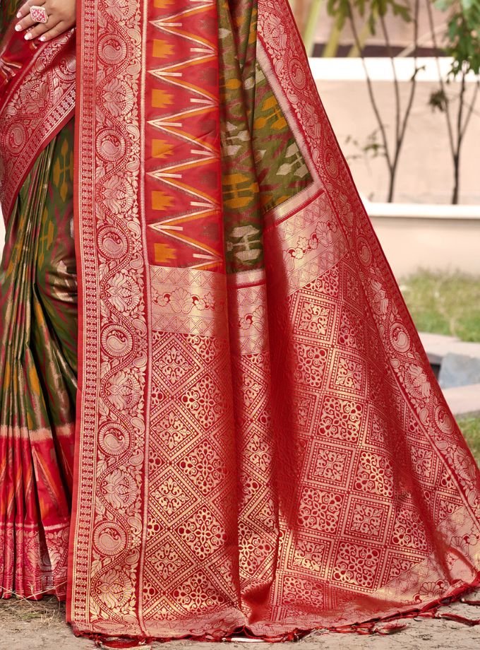 Mehandi Pochampalli Silk Saree With Blouse Piece