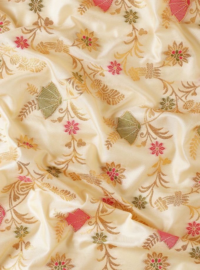 Cream Banarasi Silk Saree With Blouse Piece
