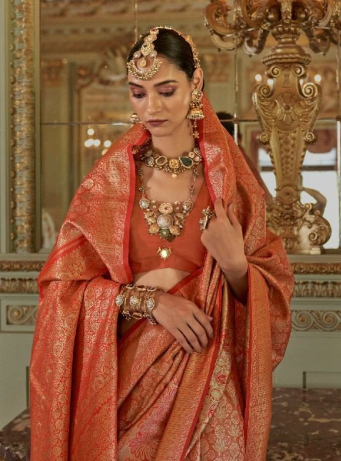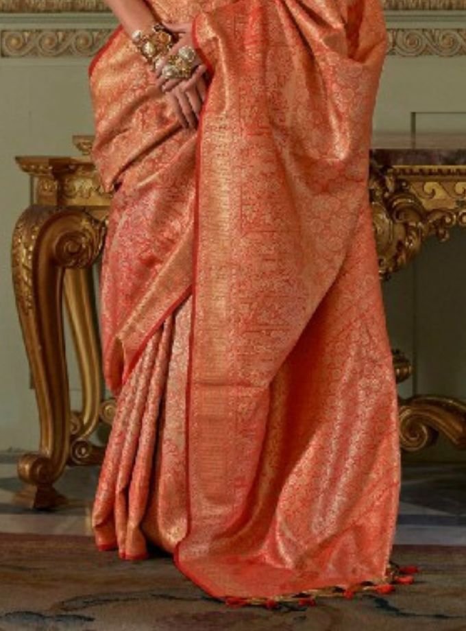 Orange Tissue Dharmavaram Silk Saree With Blouse Piece
