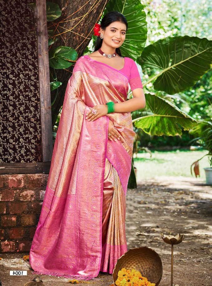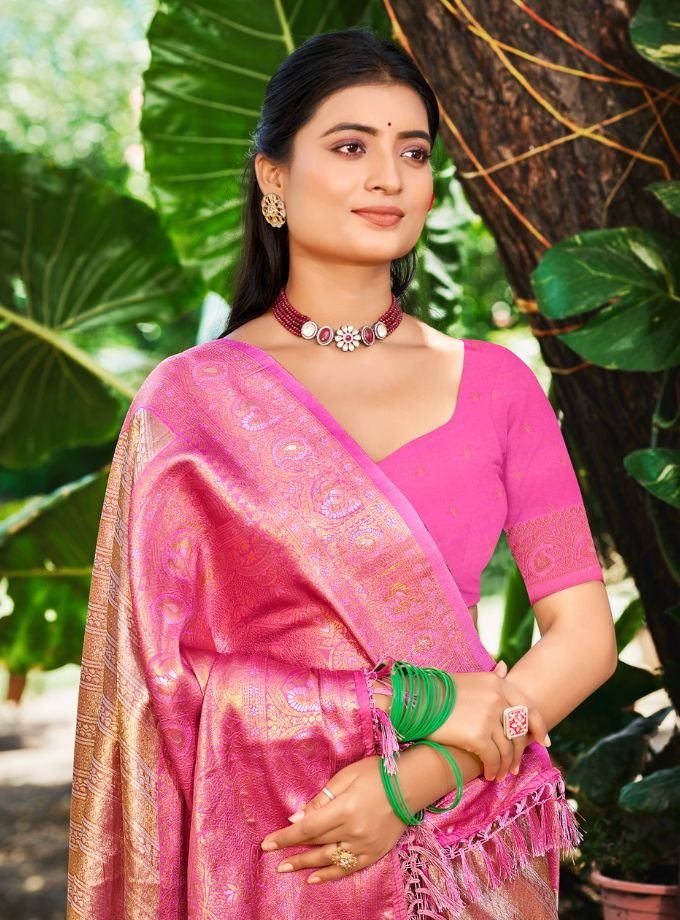 Rani Pink Kanjivaram Silk Saree With Blouse Piece