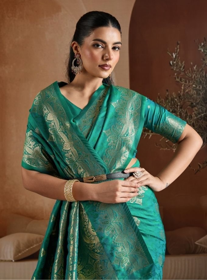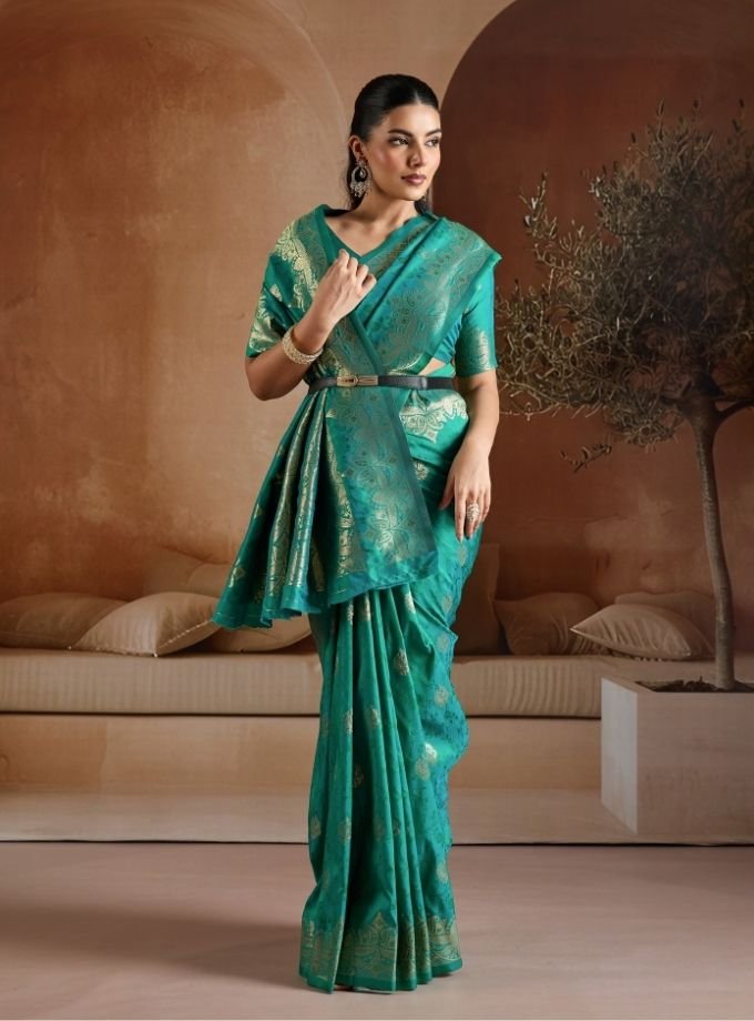Teal Green Handloom Weaving Silk Saree With Blouse Piece