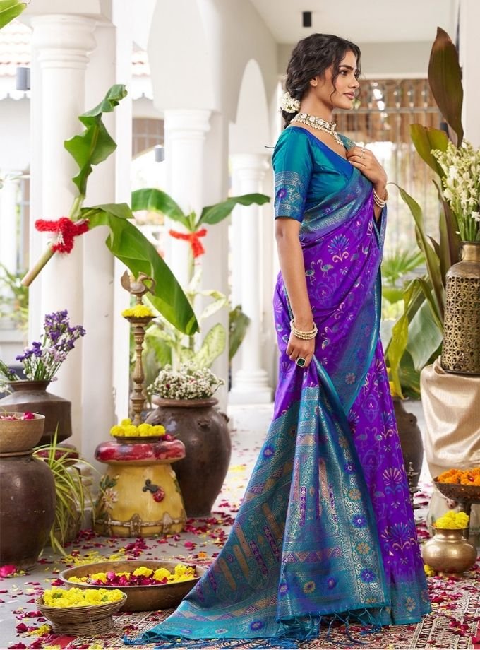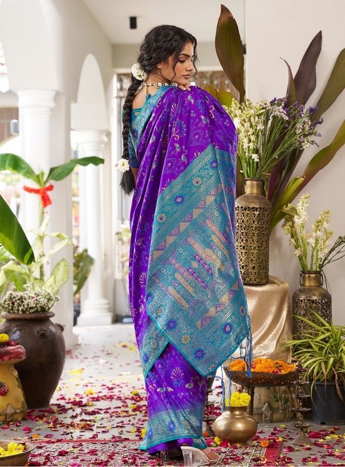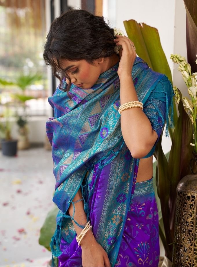 Violet Soft Silk Saree With Blouse Piece
