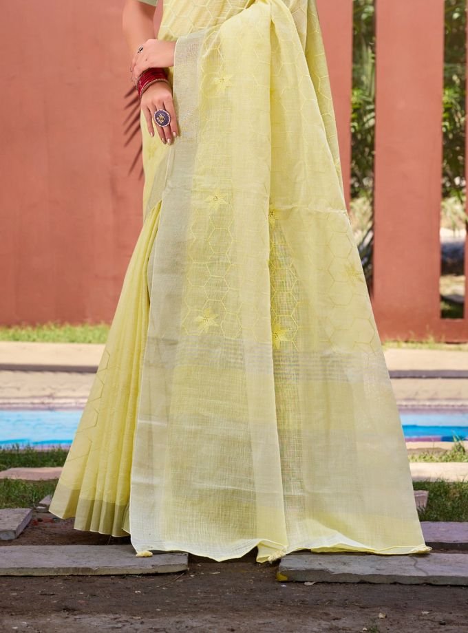 Yellow Linen Cotton Saree With Blouse Piece Yellow Linen Cotton Saree With Blouse Piece