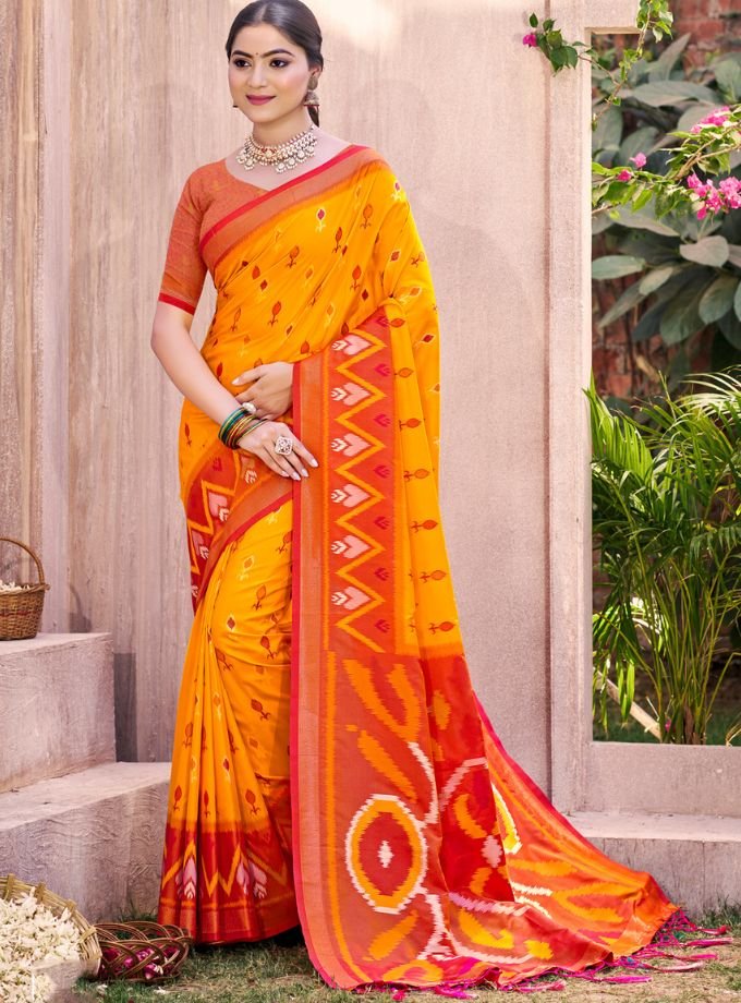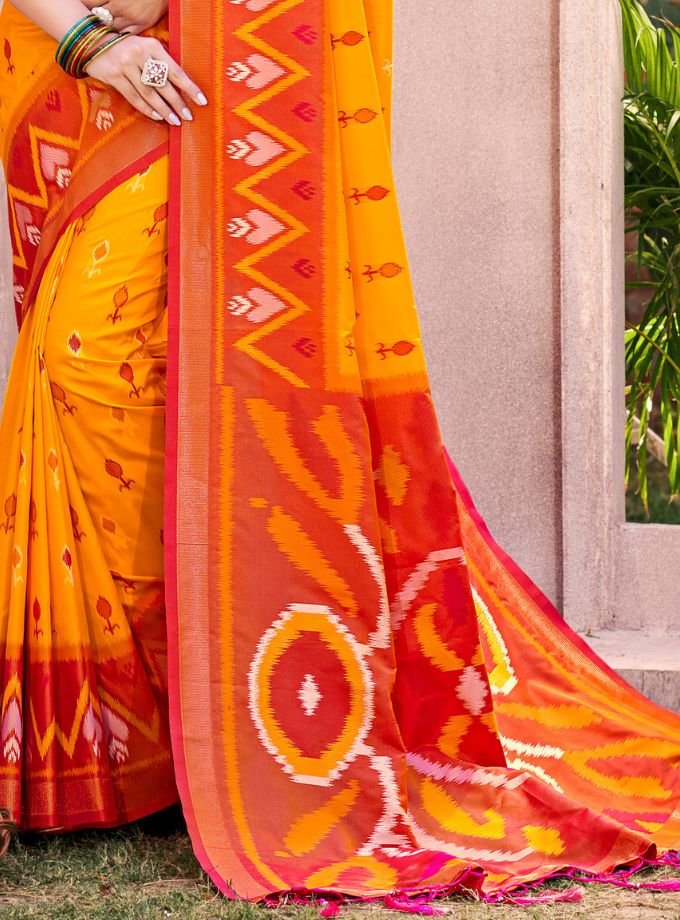 Yellow Pochampalli Silk Saree With Blouse Piece